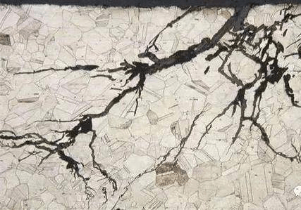 腐蚀萌生点的形成、应力作用、阳极腐蚀过程的进行,金属晶格被破坏,形成腐蚀破裂现象,即氯化物应力腐蚀破裂。氯脆的腐蚀裂纹萌生处为坑点或缝隙,通常较宽,而延伸多呈穿晶、沿晶或二者的混合形式,故整体且呈树枝状。